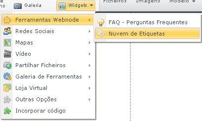 2. Clique em Widgets--->Ferramentas Webnode-->Nuvem de Etiquetas.